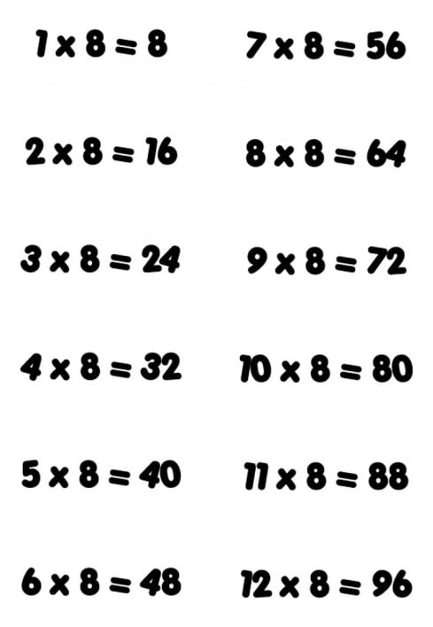Rienda Libre Graphics - Decomural 8 Times Table Math Ws-34440 | Lider Electrohogar