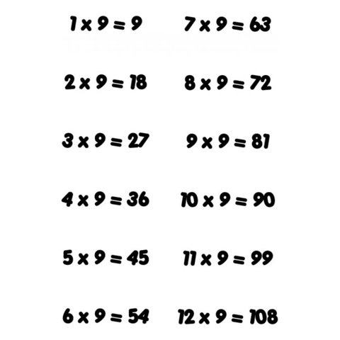 Rienda Libre Graphics - Decomural 9 Times Table Math Ws-34441 | Lider Electrohogar