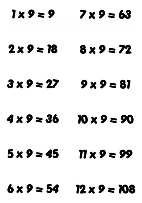 Rienda Libre Graphics - Decomural 9 Times Table Math Ws-34441 | Lider Electrohogar