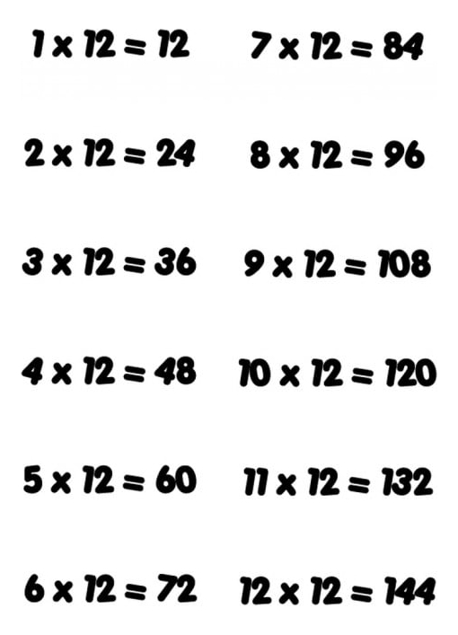 Rienda Libre Graphics - Decomural 12 Times Table Math Ws-34444 | Lider Electrohogar