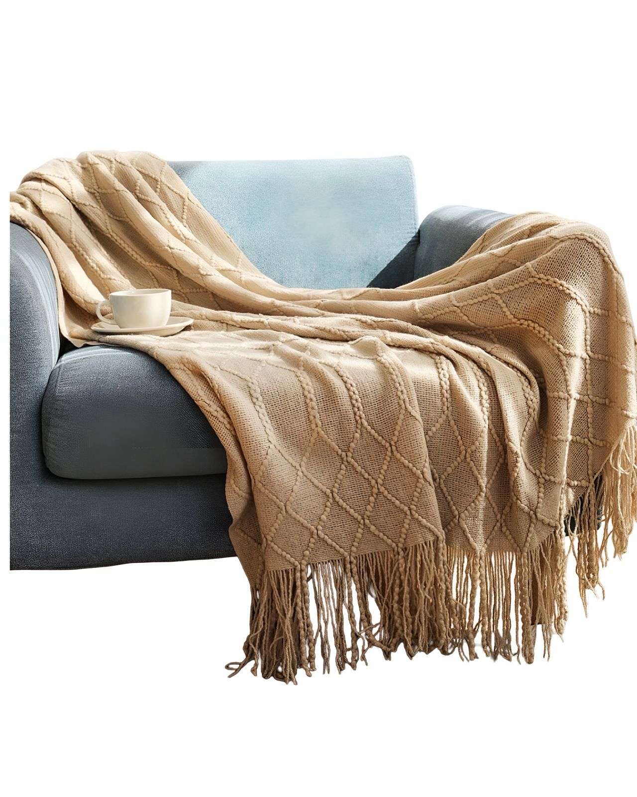 Tengfei - Mantas Para Sofas Camas U Oficinas Con Flecos 127X152 Cm Beige | Lider Electrohogar