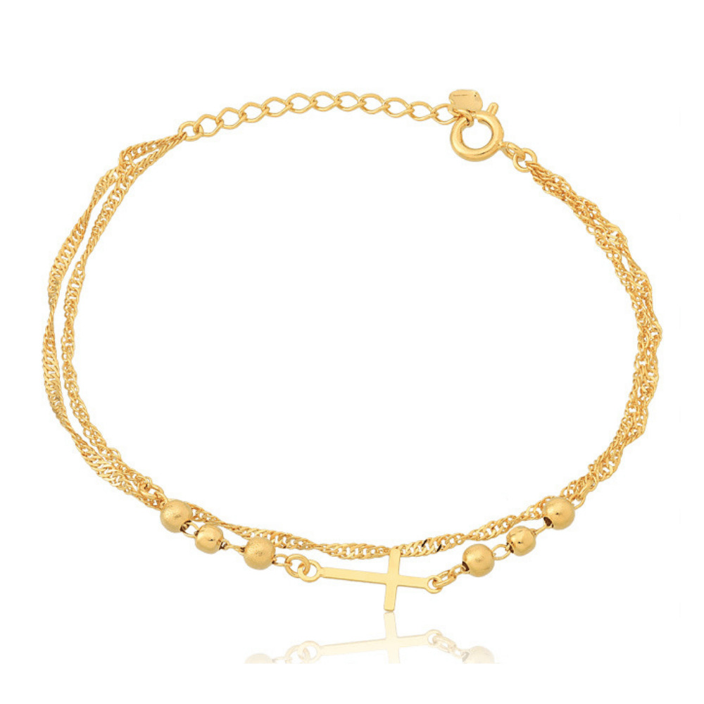 Pulsera con dije de cruz bañado en oro