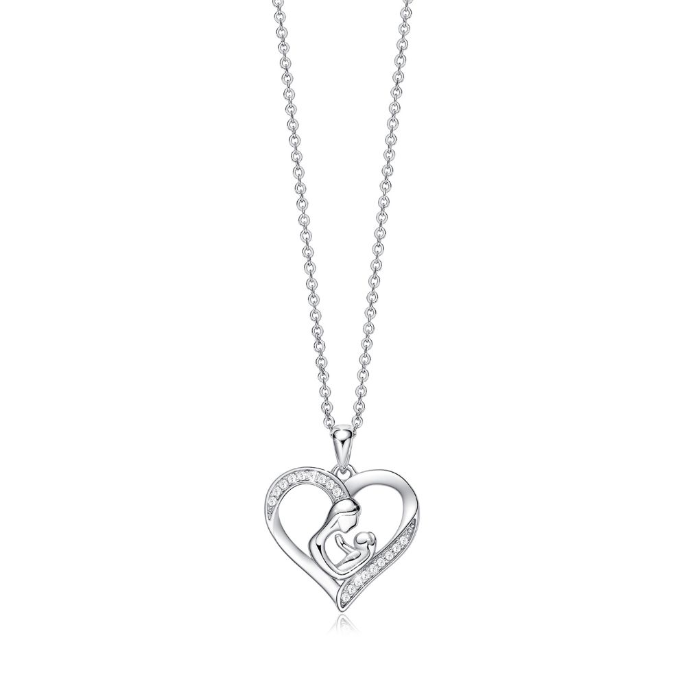 Collar en forma de corazón madre e hijo bañado en oro blanco.