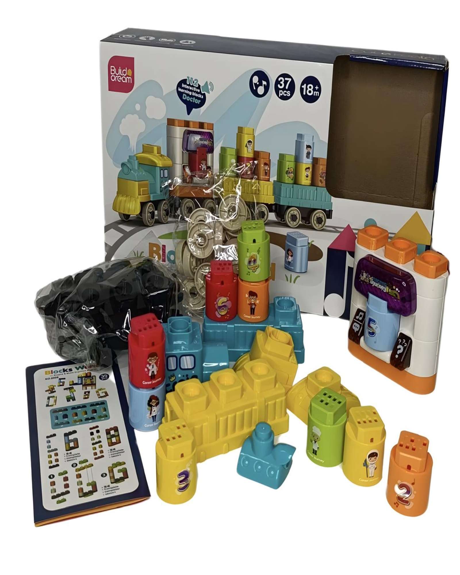 Edad recomendada: a partir de 18 meses. piezas: el set incluye 37 piezas que pueden ensamblarse para crear un tren único y colorido. material: las piezas están hechas de plástico duradero, perfecto para el manejo y el juego constante de los niños. musical: ¡sí! el tren emite música que hace que la experiencia de juego sea aún más divertida y atractiva para los niños. baterías: el juguete requiere 2 pilas aaa (no incluidas), que alimentan los efectos musicales para que el tren cobre vida. desarrollo de habilidades: este juguete ayuda a mejorar la coordinación mano-ojo, la destreza en la manipulación de piezas pequeñas y la creatividad al permitir a los niños diseñar y construir su propio tren medidas aproximadas: 39x23x8,5 cm