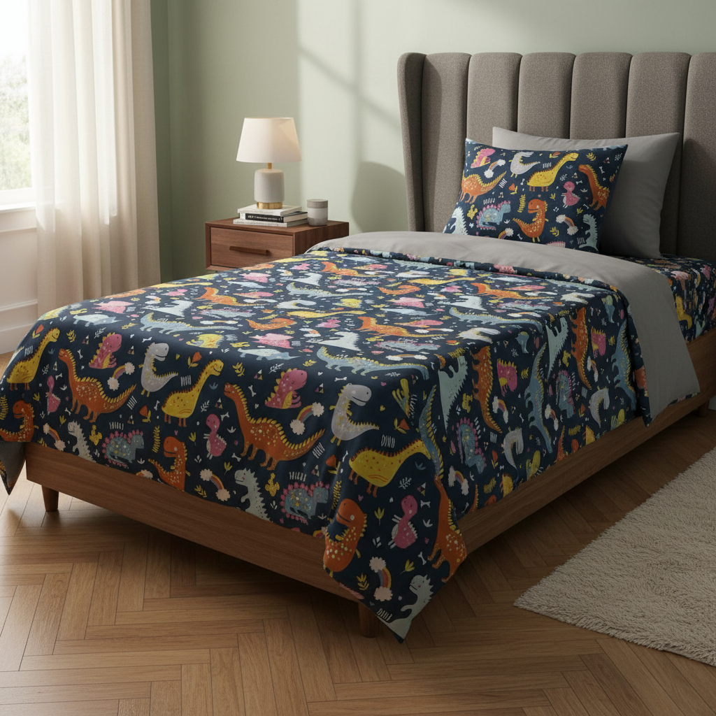 Teng Fei - Juego De Sábanas Diseño Infantil Plaza Y Media Dinosaurio | Lider Electrohogar