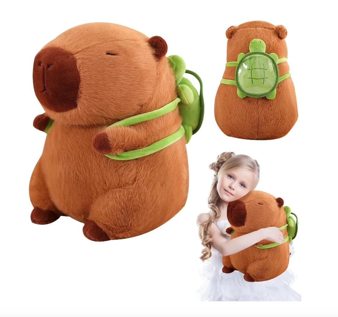 Peluche De Capibara Kawaii Carpincho Mochila Tortuga 40cm