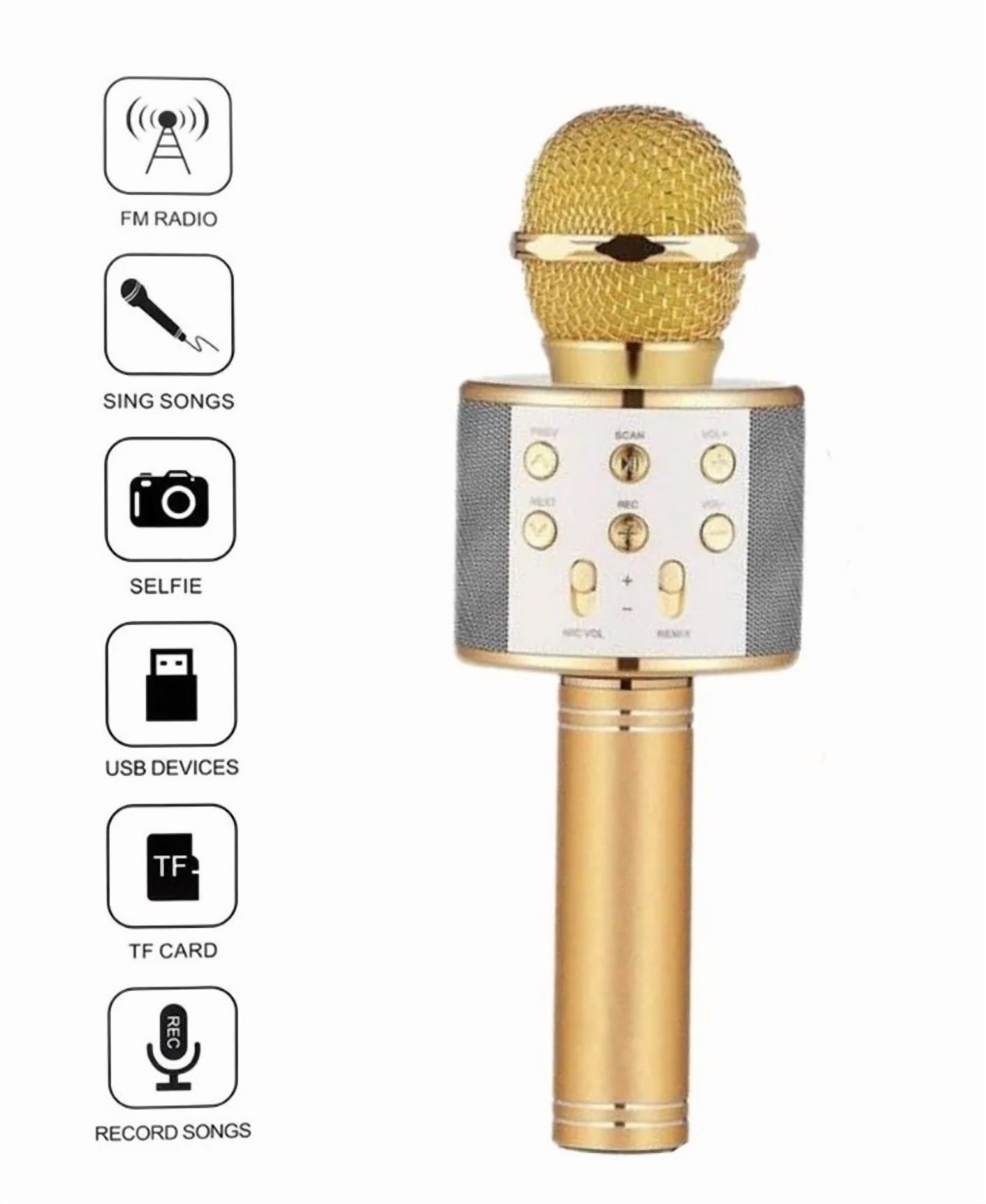 Microfono Karaoke Inalambrico Con Bluetooth Y Bocina Altavoz Color Dorado