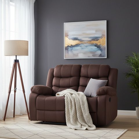 Sofá Reclinable Rosen Archie 2 Cuerpos Tela Manual Café