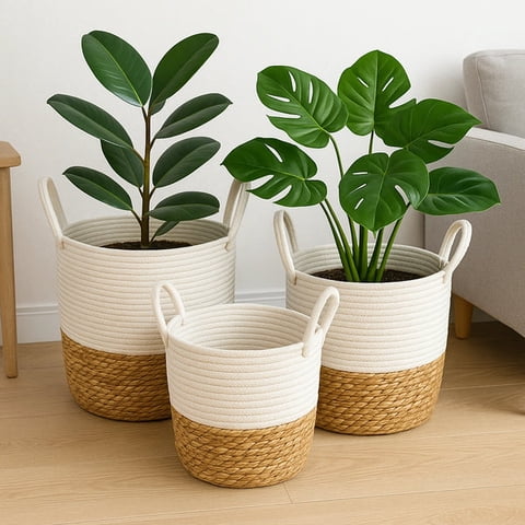 Estilodomus - Set De 3 Cestas De Organización Rústicas Con Cuerdas Macetas