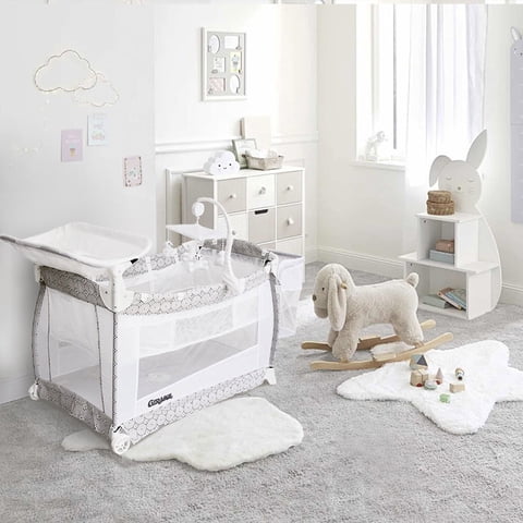 Girasol - Cuna Corral Nevada 2 Alturas Con Movil Musical Oso Polar | Lider Electrohogar