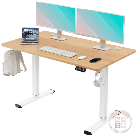 Escritorio eléctrico con pasacables Cosmo natural/blanco 140x60x73.5-123.5 cm