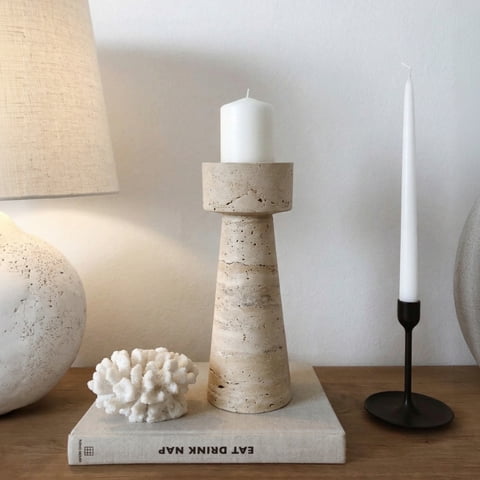 Santú Home & Deco - Candelabro Portavelas Marmol Travertino Torre Pequeño