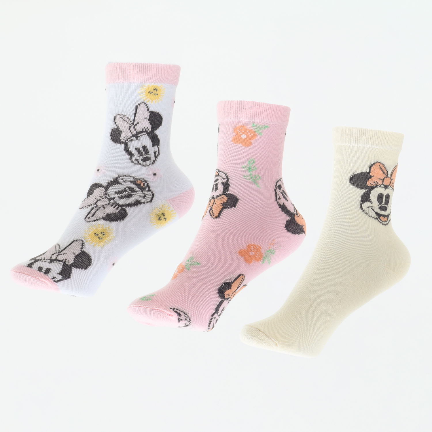 Tripack Calcetines Niña Rosado Flores Minnie Disney