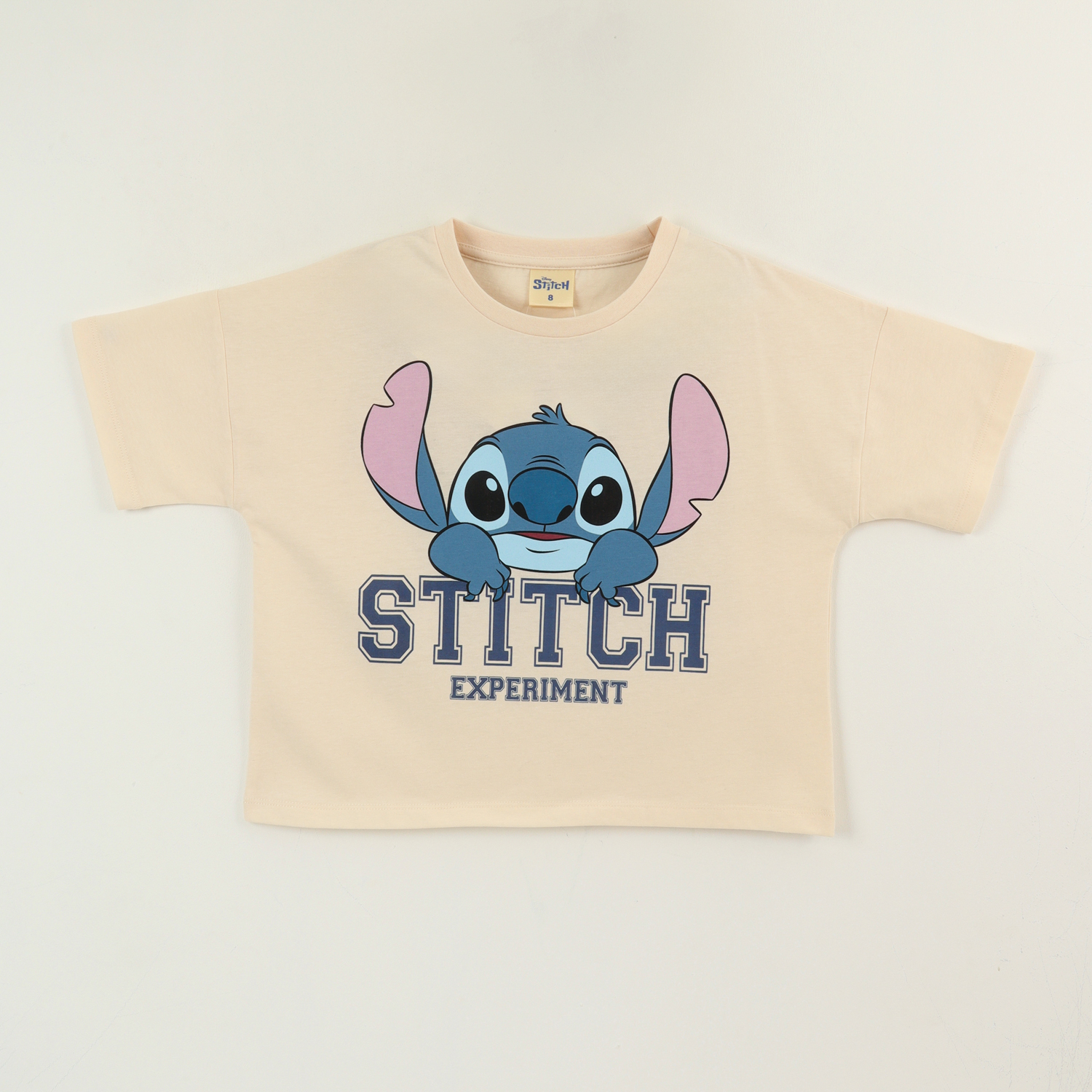 Polera manga corta niña beige cara lilo & stitch disney