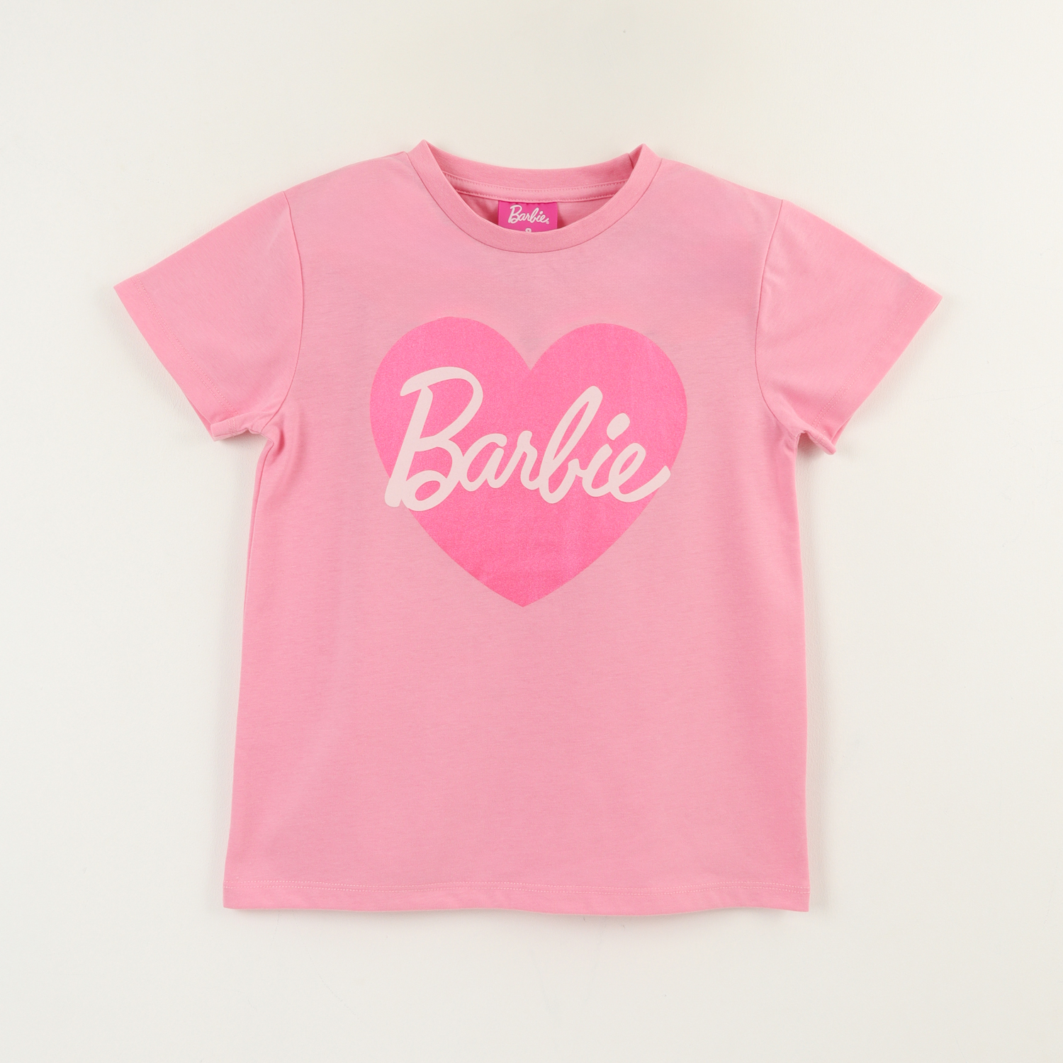 Polera manga corta niña rosado logo barbie