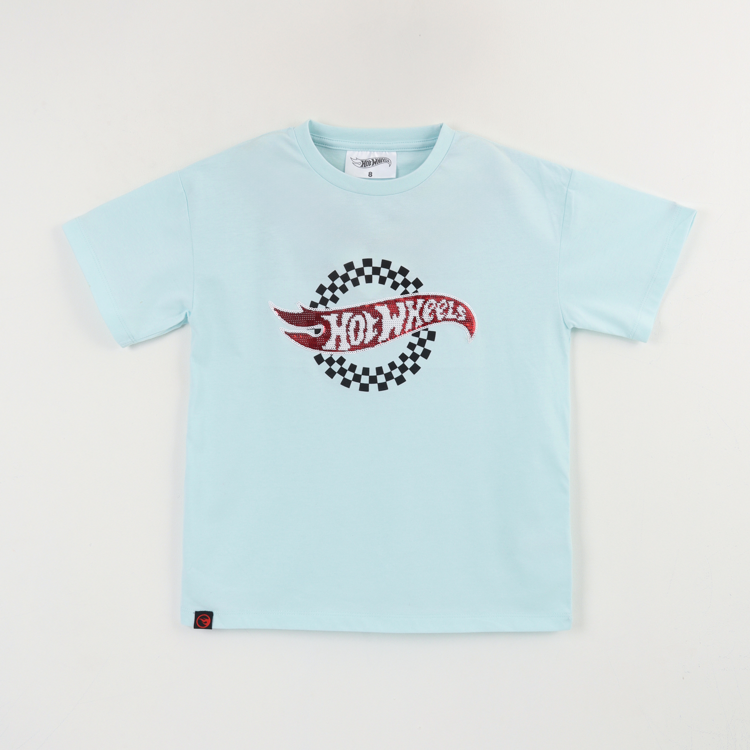 Polera manga corta niño celeste logo hot wheels
