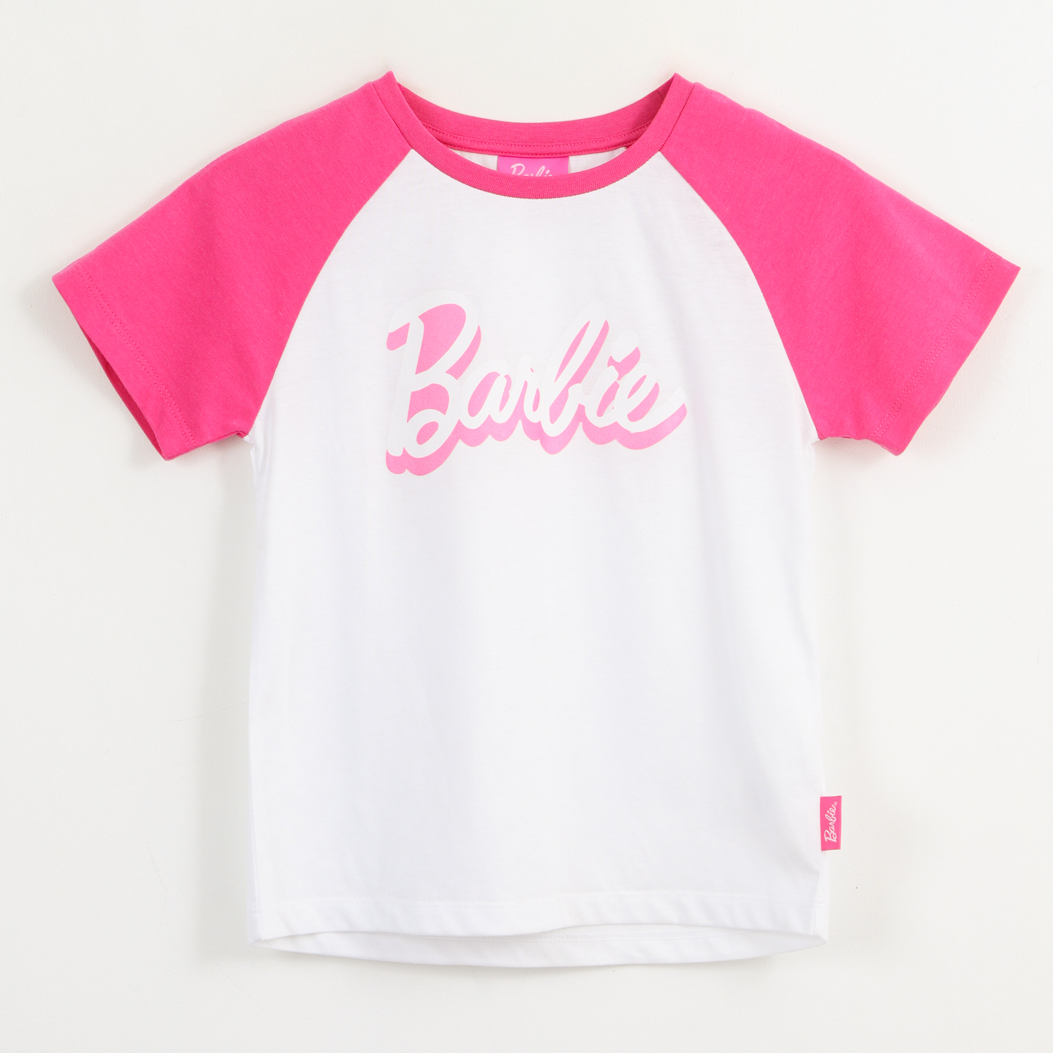 Polera Manga Corta Niña Rosa Raglan Barbie