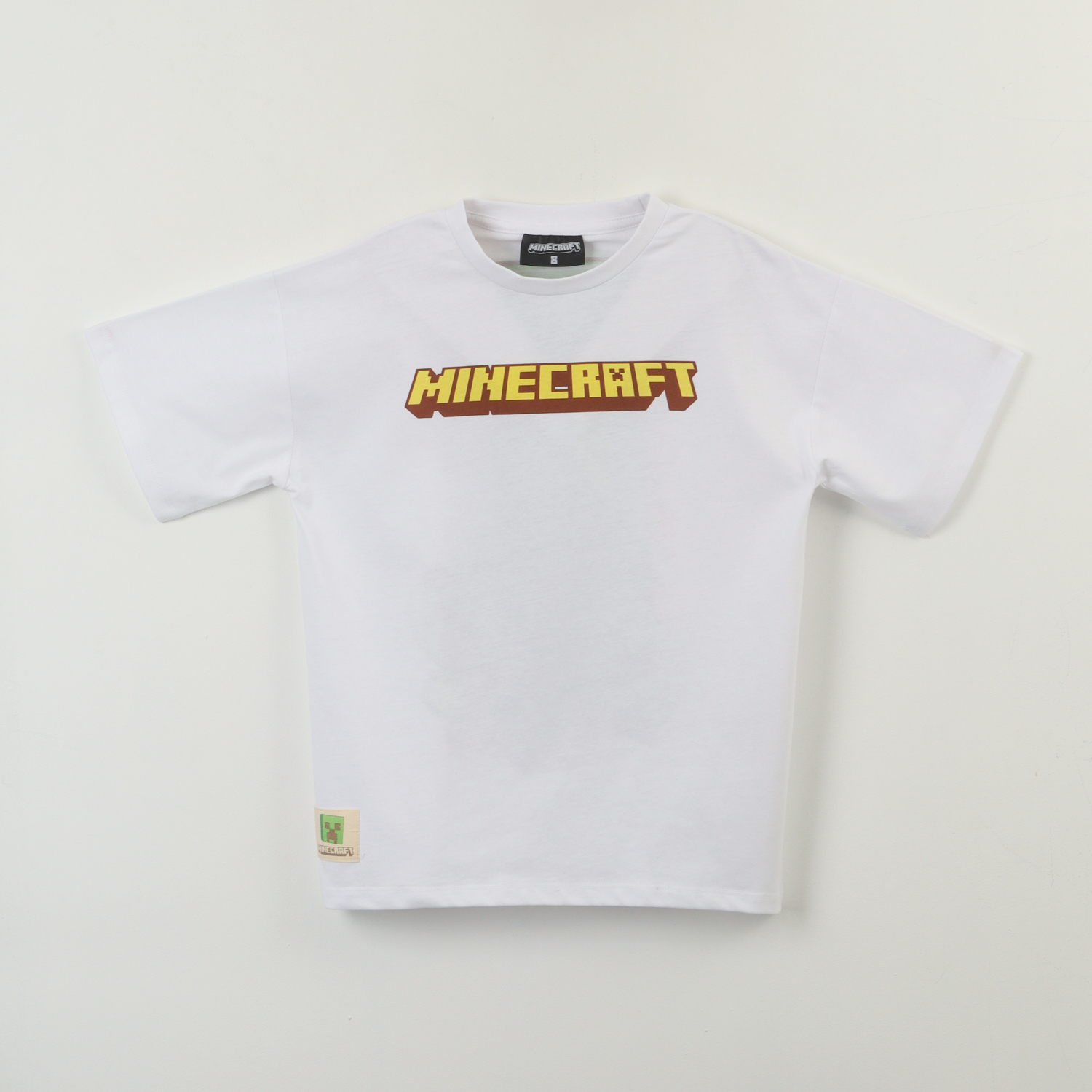 Polera Manga Corta Niño Blanco Back Print Creeper Minecraft
