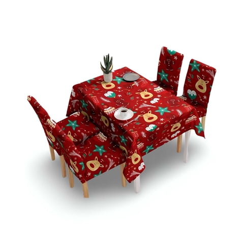 Teng Fei - Pack De Mantel Con 6 Fundas De Sillas Antimanchas Navideño 140X220 Cm J1
