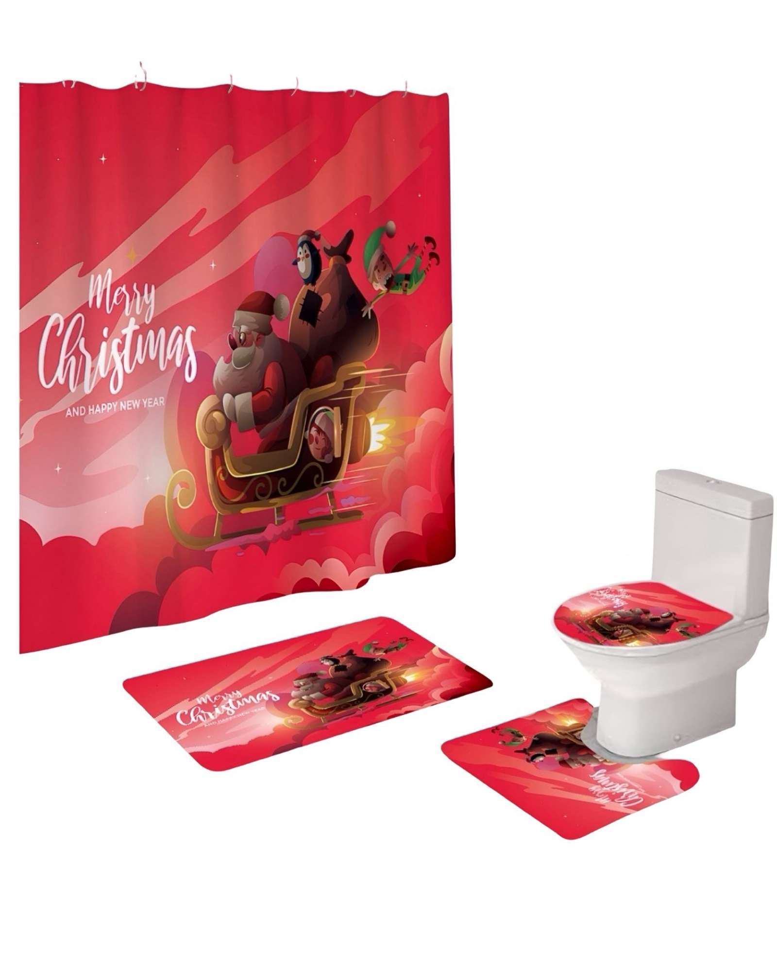 Teng Fei - Set 4 Piezas Cortina De Baño Y Alfombras Diseño Navideño Tf08 | Lider Electrohogar