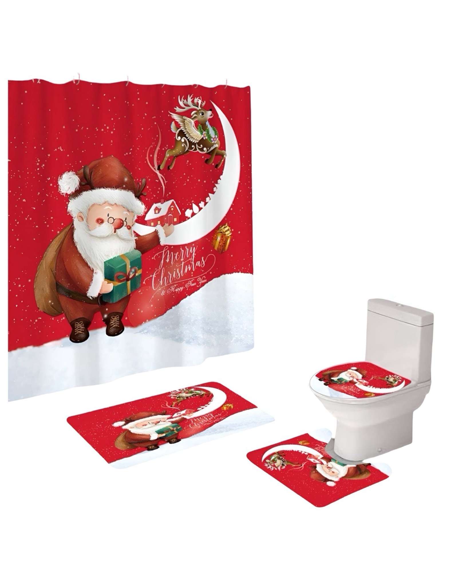 Teng Fei - Set 4 Piezas Cortina De Baño Y Alfombras Diseño Navideño Tf04 | Lider Electrohogar