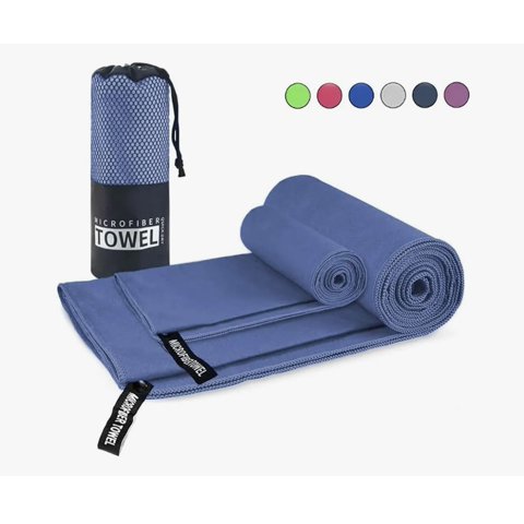Toallas Microfibra Grande Secado Rápido Pack + Estuche Azul K-Fit