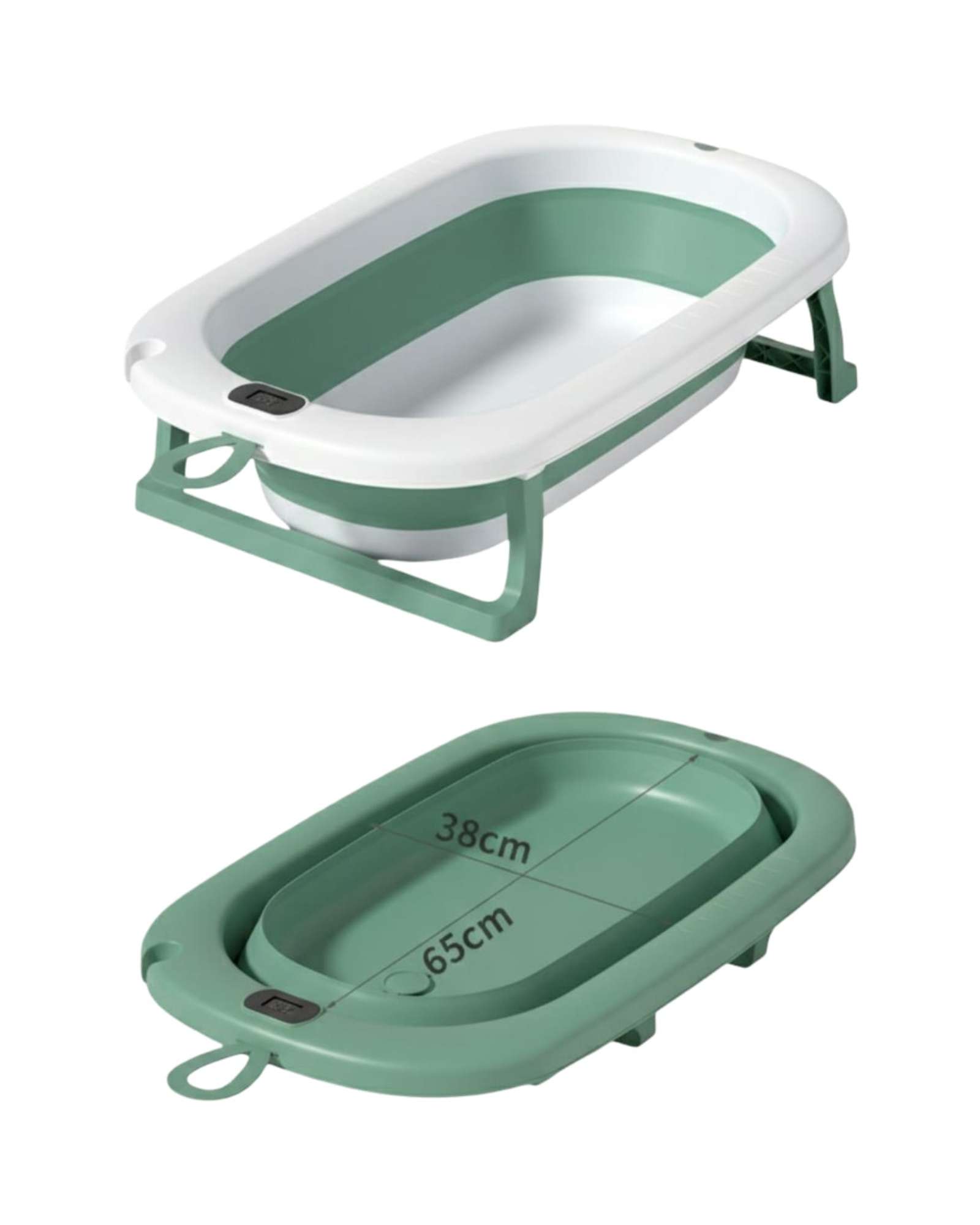 BAÑERA TINA BEBE PLEGABLE PLEGABLE CON TERMOMETRO Y COJÍN VERDE