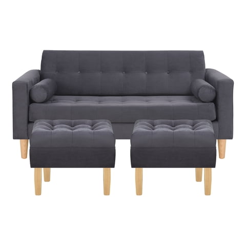 Bodevir - Sofa Retro 3C + 2 Pouf Felpa 05 Gris | Lider Electrohogar