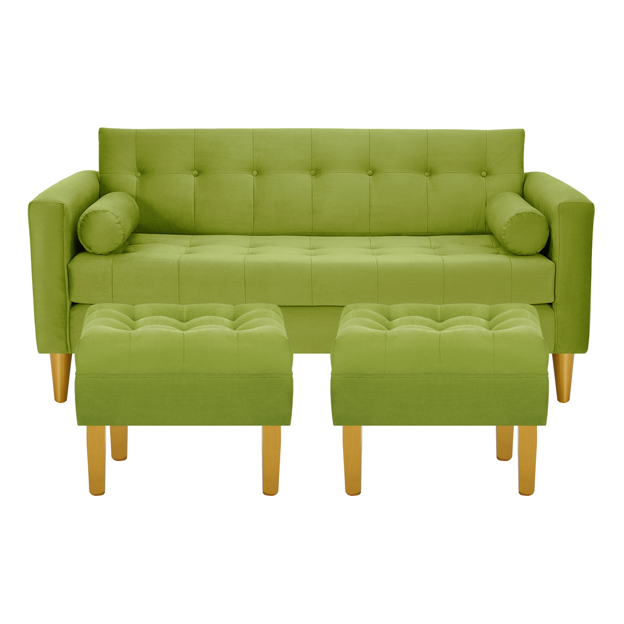 Bodevir - Sofa Retro 3C + 2 Pouf Felpa 01 Pistacho | Lider Electrohogar