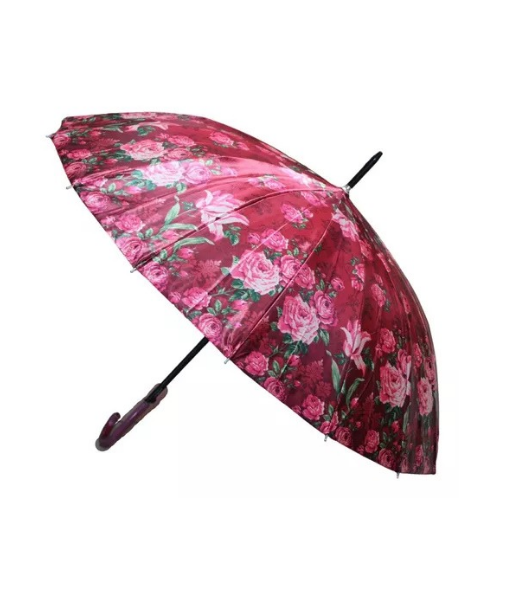 Paraguas plegable 16 varillas 79cm automático burdeo