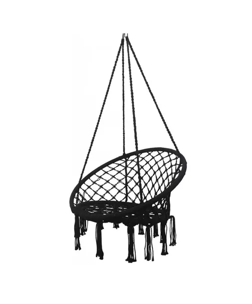 Genérico - Hamaca Silla Colgante Redonda Interior Exterior Macramé Negro | Lider Electrohogar