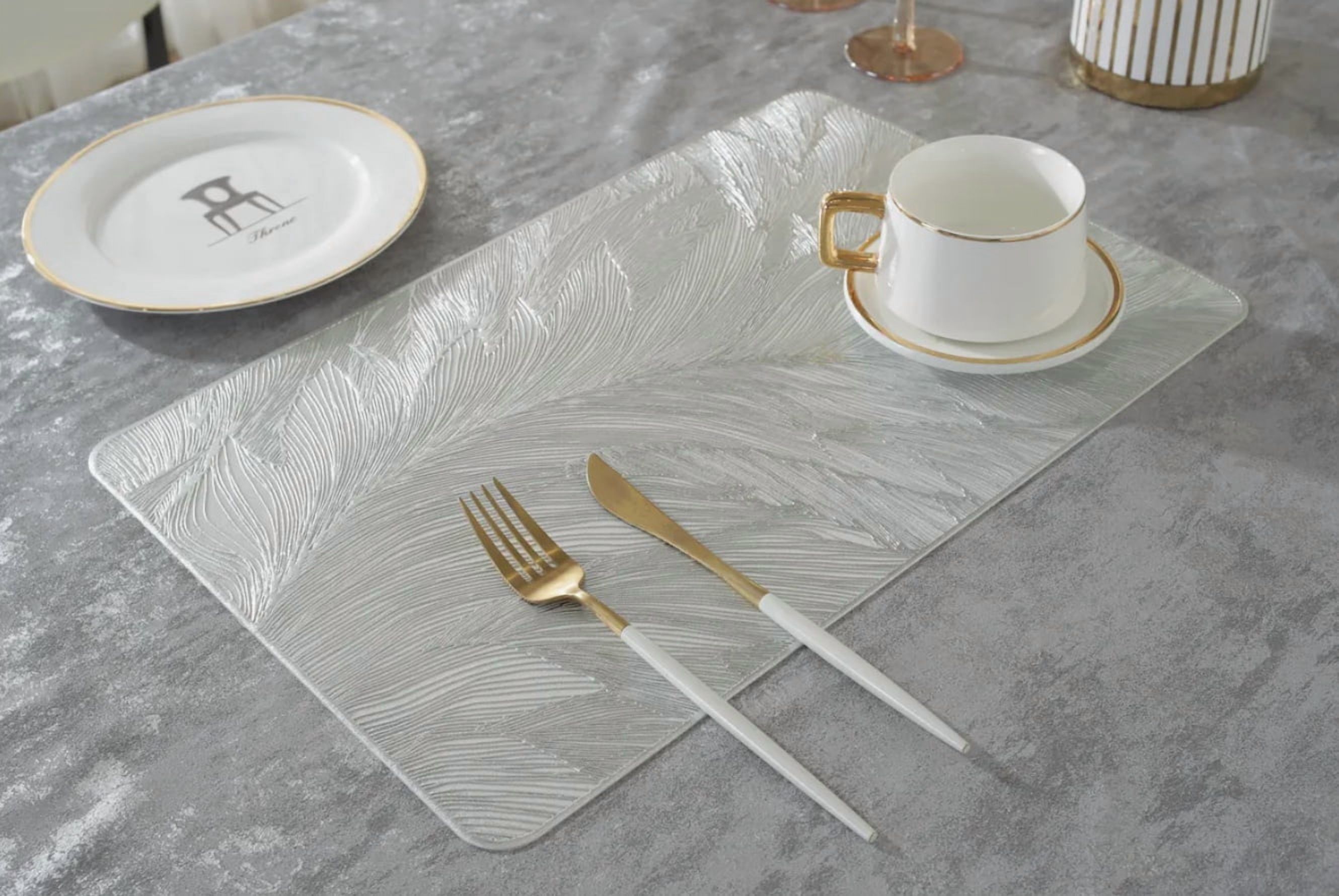 Riqui - Mantel Individuals Plumas En Relieve Dorado