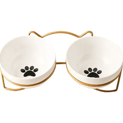 Genérico - Plato Elevado Cerámica Lunares Mascotas