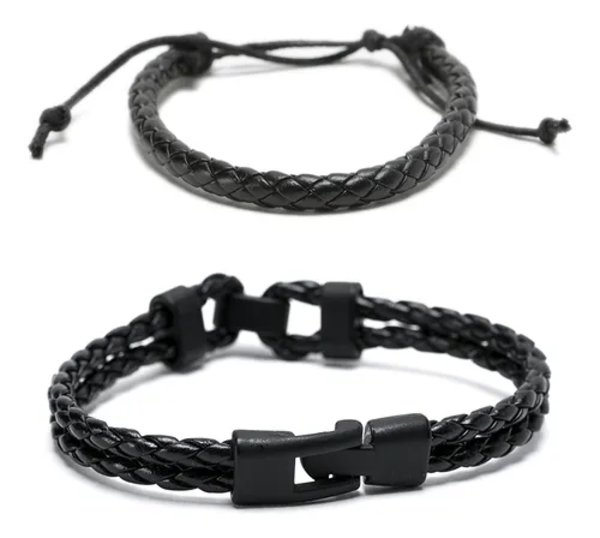 Pack 2 pulseras cuero negro hombre mujer