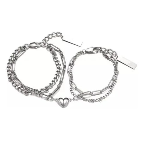 Genérico - Pulseras Para Parejas Con Imán, Corazón, Regalo De Amor, Color Plata