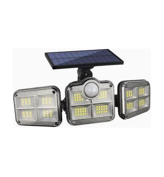 Luz solar foco triple cabezal con sensor de movimiento negro
