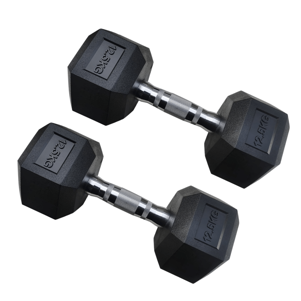 Par mancuerna hexagonal de 12,5 kg, fabricada en material resistente y recubierta para mayor durabilidad. cuenta con agarre cromado antideslizante que brinda seguridad y control en cada repetición. ideal para entrenamientos de fuerza, hipertrofia y uso en casa o gimnasio.