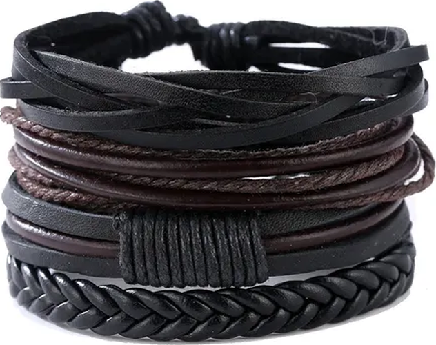 Pios - Pulsera Vintage Multicapa Cuero Pu Negra