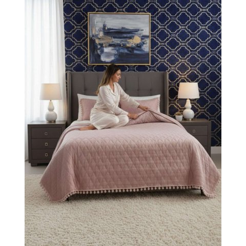 Cobertores de Verano-Primavera con Diseño de Pompon (king-super king) rosado