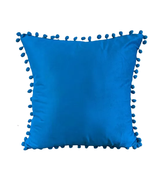 Genérico - Pack De 2 Fundas De Cojines Terciopelo Con Pompones 45X45 Cm Celeste | Lider Electrohogar