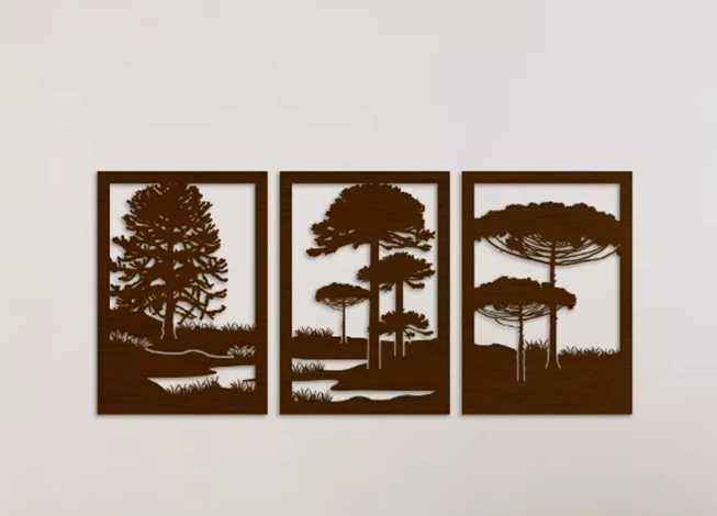 Set de 3 cuadros paisaje árboles araucarias roble