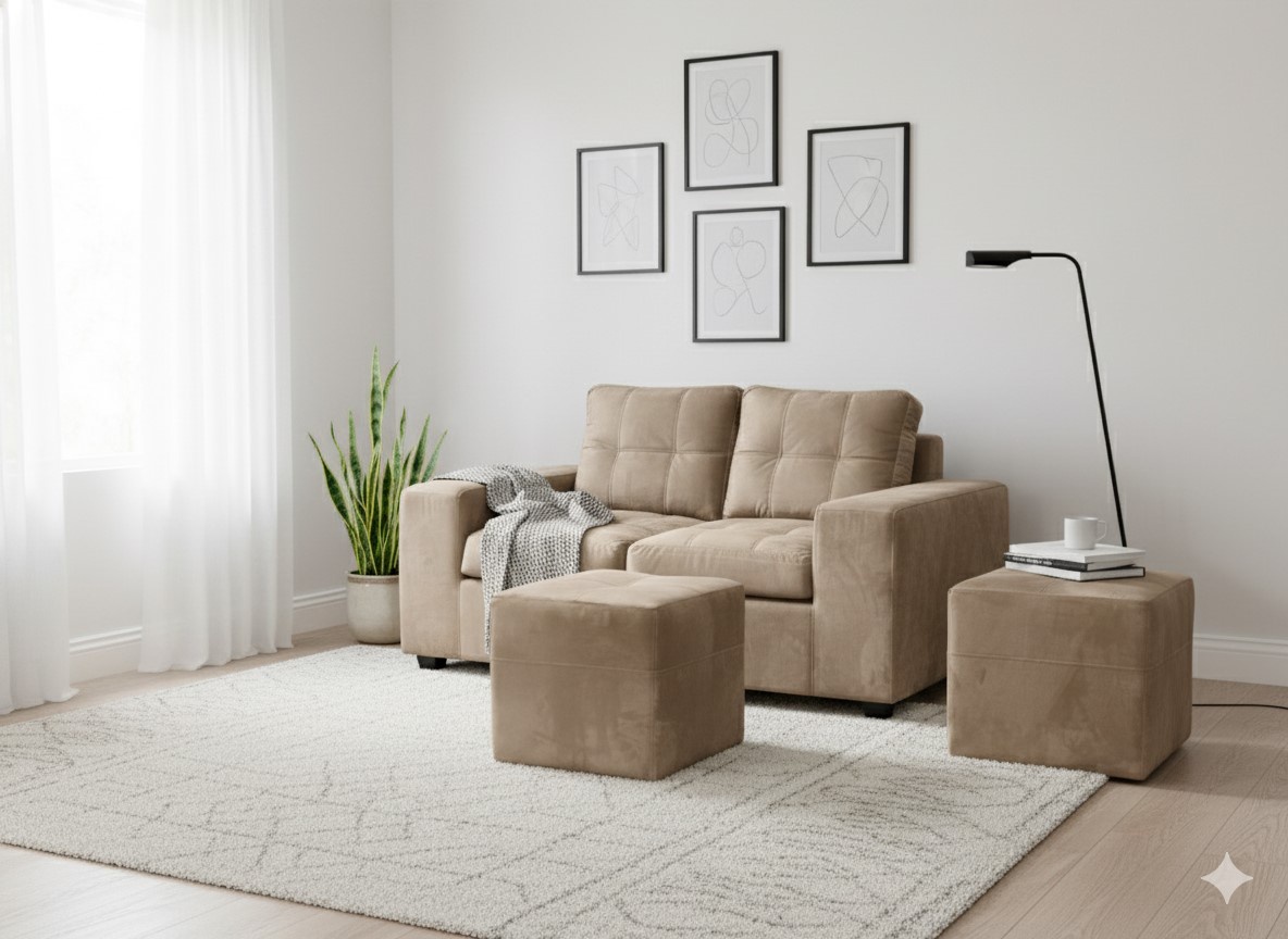 Muebles Cottoni - Sofá 2 Cuerpos + 2 Pouf Lucca Felpa