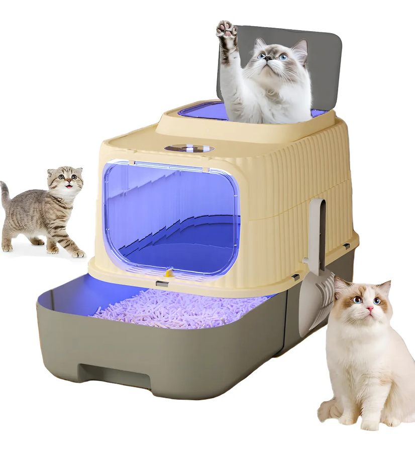 Genérico - Arenero Para Gatos, 49×37×37Cm Grande Arenero Cerrado Plástico Para Gato Con Luz Ultravioleta Y Pala Para Arena, Fácil De Limpiar, Resistente A Olores Y Salpicaduras | Lider Electrohogar