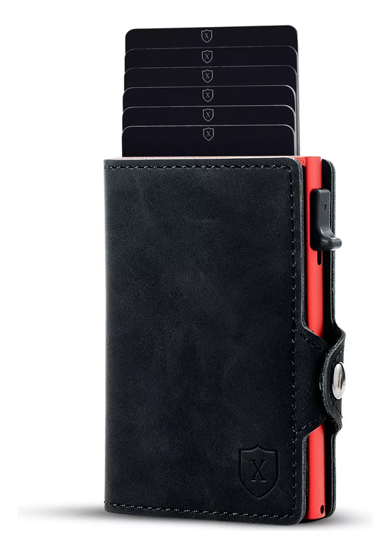 Billetera y tarjetero negro con rojo xclusive chile