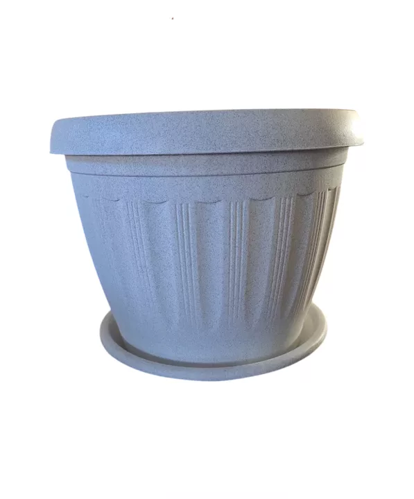 Macetero redondo con plato 30cm blanco marmolado