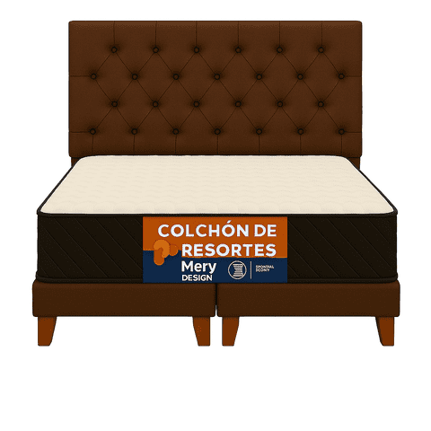 Ethan Desing - Cama 2 Plaza Capitoné + Respaldo 2P Capitone Cafe + Colchón 2P Mery Desing | Lider Electrohogar