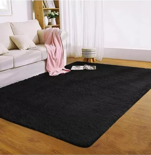 Alfombra peluda living hogar 150x200 cm negra