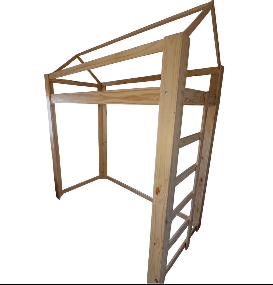 Cama alta con casita fabricado en madera pino