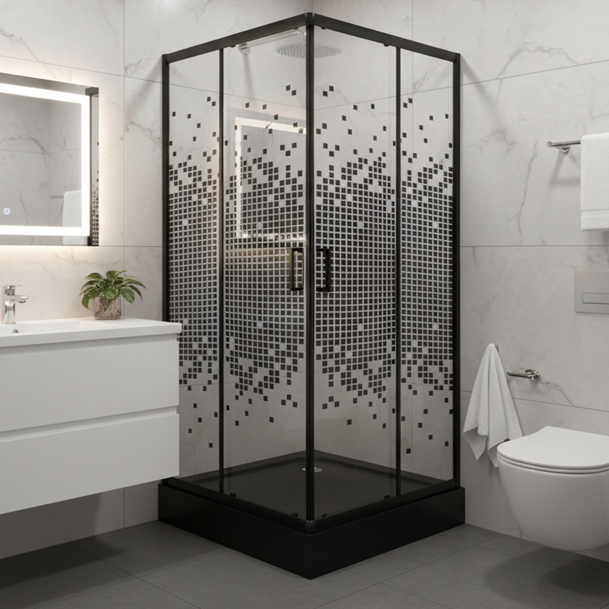 Shower Door recto con receptáculo Cuadros negros 90x90x198 cm