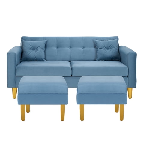 Bodevir - Sofa New Retro 3C + 2 Pouf Felpa 01 Azul Petroleo | Lider Electrohogar